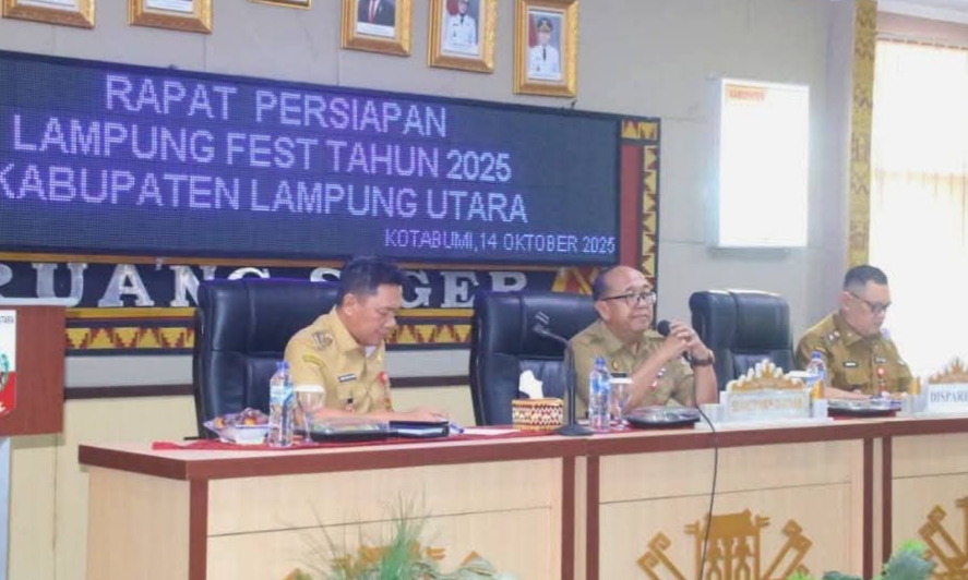 Kotabumi,HFL- Sekretaris Daerah Kabupaten Lampung Utara, Drs. H. Lekok, M.M., memimpin Rapat Persiapan Lampung Fest Tahun 2025, hari ini di Aula Siger Setdakab Lampung Utara.