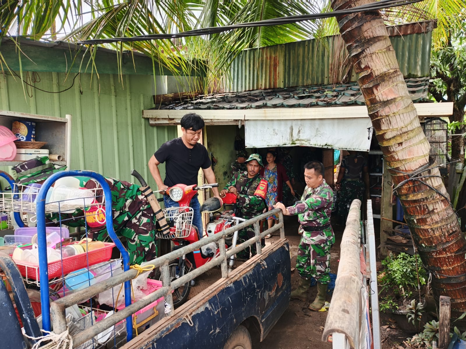 Selain itu para personil lainnya melakukan evakuasi barang membantu menyelamatkan dan memindahkan barang-barang milik personel di Asmil Kodim 0412/LU yang rumahnya terdampak angin puting beliung. Kemudian pembersihan puing bangunan dengan mengangkat sisa-sisa atap dan material bangunan Asmil yang rusak guna memastikan keamanan penghuni asrama.