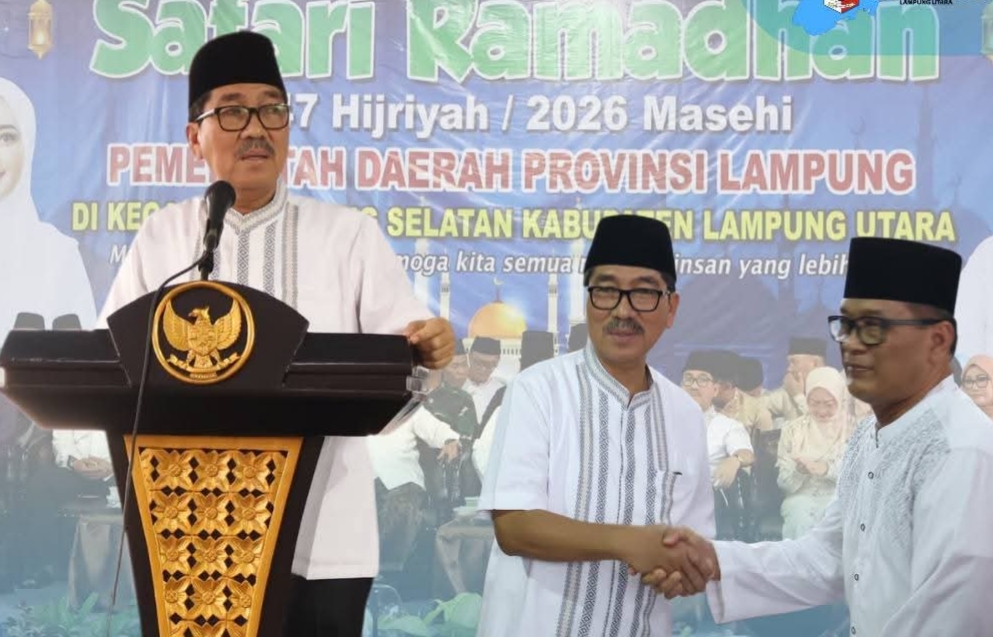 Kotabumi,HFL – Bupati Lampung Utara H.Hamartoni Ahadis menerima kunjungan tim Safari Ramadhan Provinsi Lampung, Selasa (3/3/ 2026) Kegiatan Safari Ramadhan ini dipusatkan di Masjid Ad-Da’wah Desa Kalibening Raya, Abung Selatan.