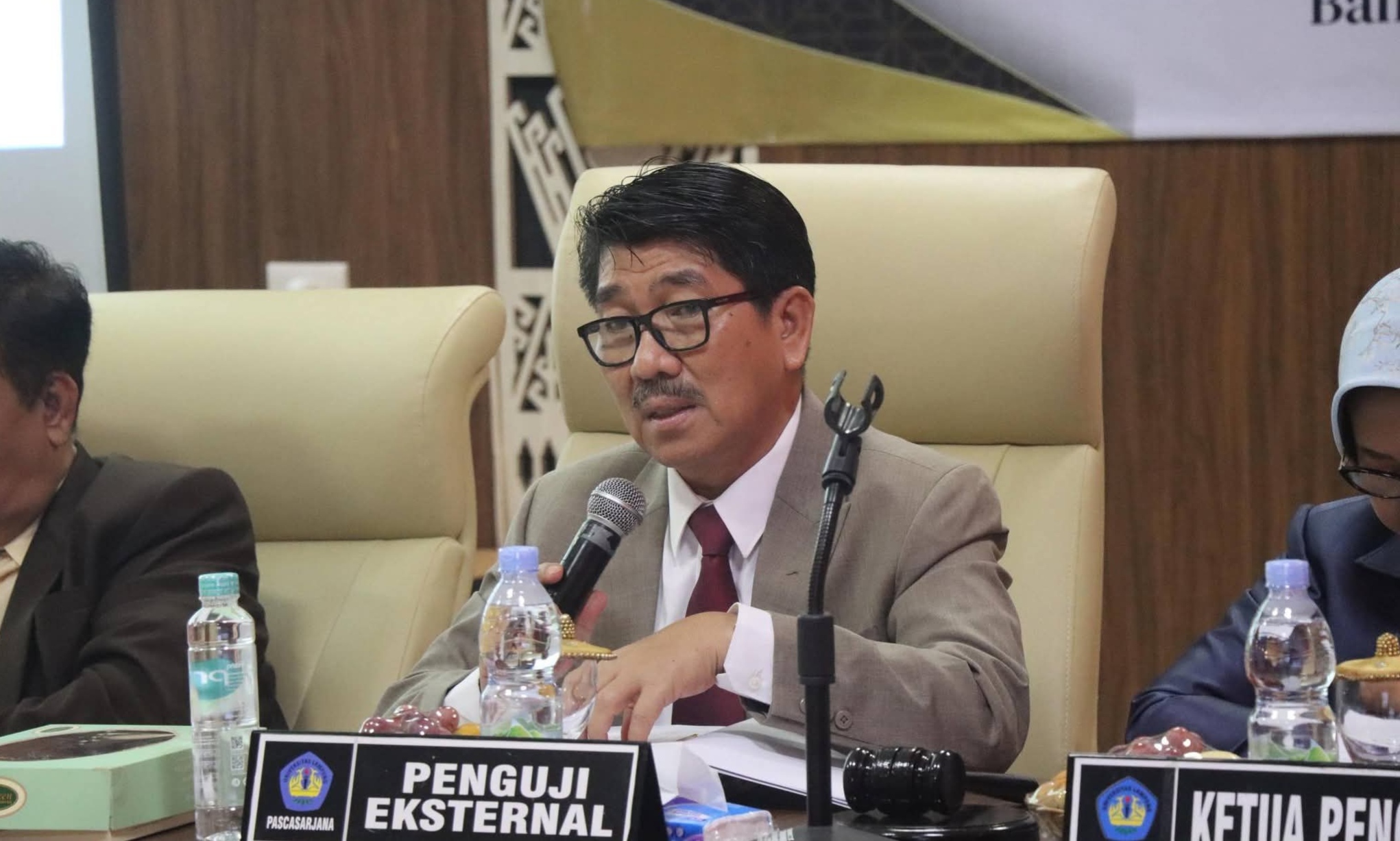 Pada sesi pertama, beliau bertindak sebagai dosen penguji tamu dalam ujian terbuka disertasi atas nama Winda Trijayanthi, mahasiswi Program Studi Doktor Ilmu Lingkungan Pascasarjana Universitas Lampung.